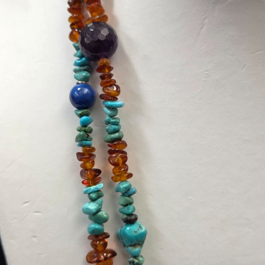 Jay King Natural Amber & Gemstone Chunk & Chip Beaded Necklace