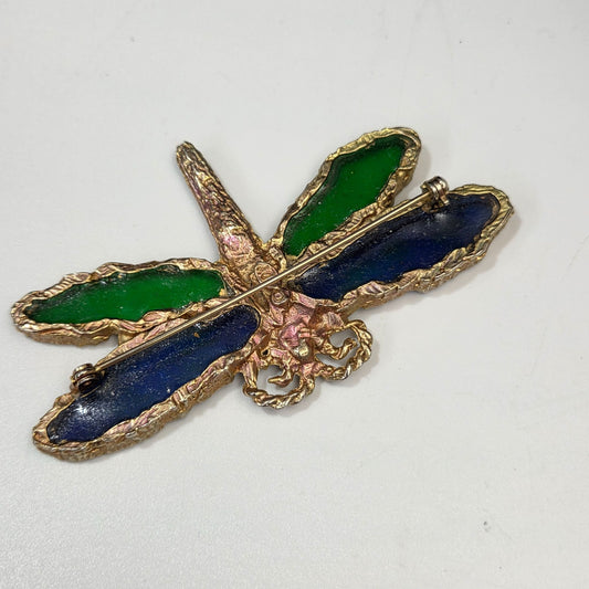 Vintage Joy Les Bernard Resin Plique a Jour Stained Glass Dragonfly Brooch