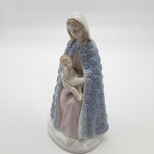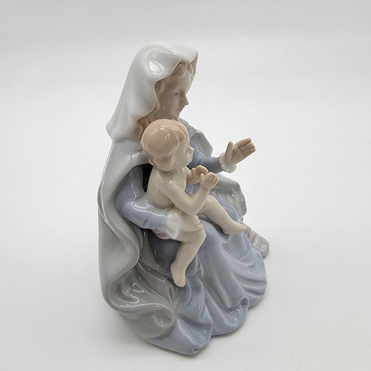 Vintage Roman Japan Porcelain Madonna & Child Figurine Blue Floral Cloak