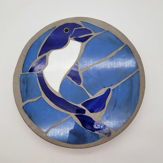 Round Mosaic Glass Dolphin Concrete Stepping Stone