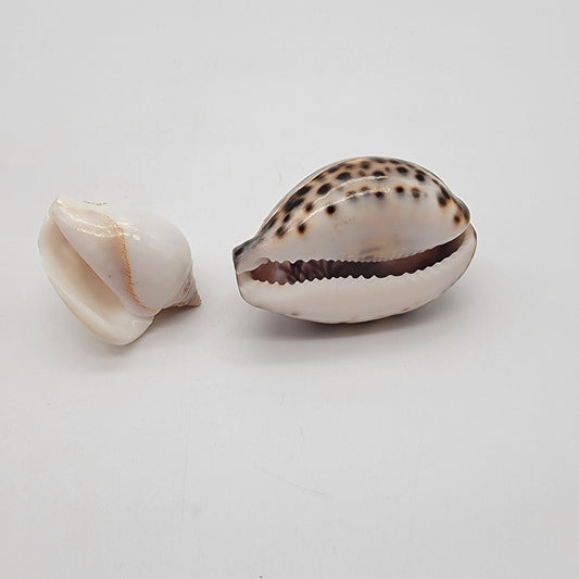 Pair of Carved Cowrie & Conus Shells Fish & Flamingo