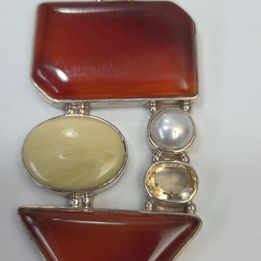 Artisan Multi-Gemstone Pendant With Carnelian Serpentine Citrine & Coin Pearl