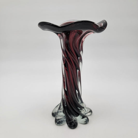 Vintage Cavalier Art Glass Twisted Dark Amethyst Purple Vase