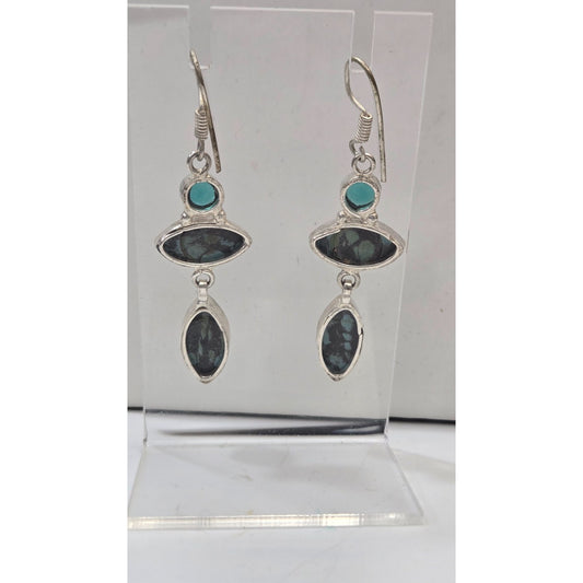 Blue Topaz & New Lander Turquoise Dangle Earrings