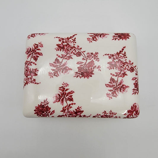 Vintage Red Roses Toile de Jouy Transferware Porcelain Rectangular Dresser Box