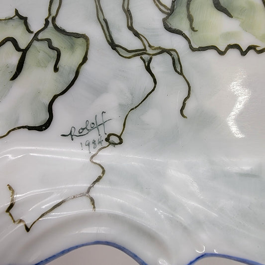 Vintage 1984 Signed Roloff Handpainted Porcelain Serving Plate With Morning Glories