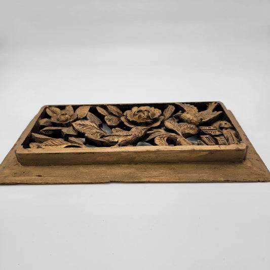Vintage Gilded Hand-Carved Wood Relief Panel Birds & Flowers