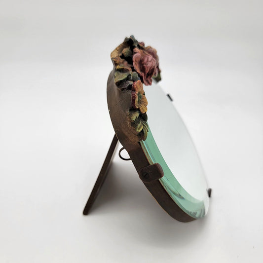 Antique Barbola Vanity Dresser Mirror With Flowers