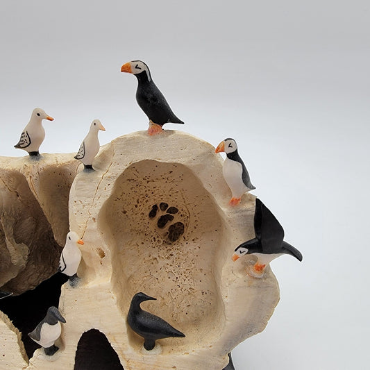 Alaskan Native George Mayac Puffins Seagulls On Bone Sculpture