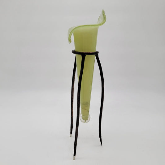 Vintage Jack In The Pulpit Art Glass Epergne With Wrought Iron Stand