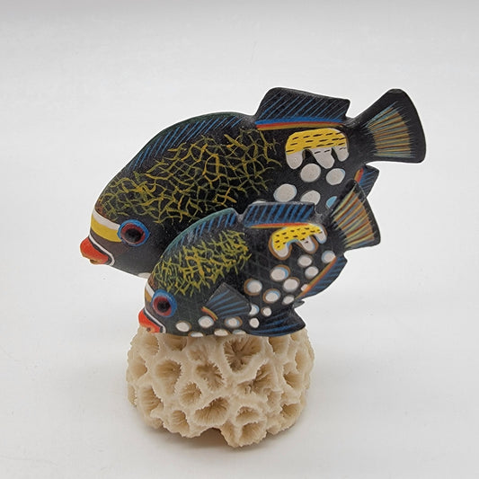 Pair of Clown TriggerFish on Coral & French Angelfish Figurines