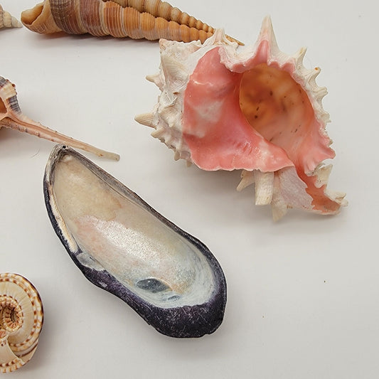 Sea Shell Collection - 13 Pieces Murex Whelk Scallop Abalone Conch & More