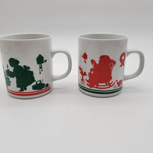 Pair Of Vintage Avon 1984 Christmas Silhouette Coffee Mugs