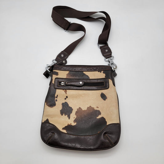 Cowhide Print Crossbody Purse With Studded Cross Embellishment