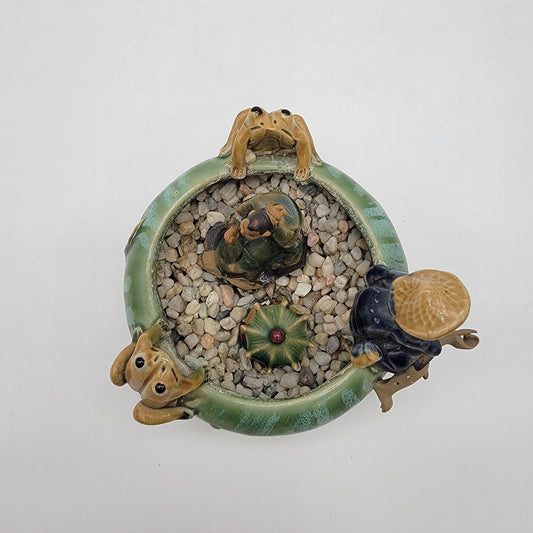 Vintage 1960s Mudmen & Frogs Majolica Pottery Planter Bowl