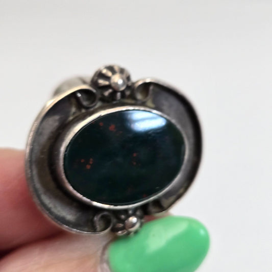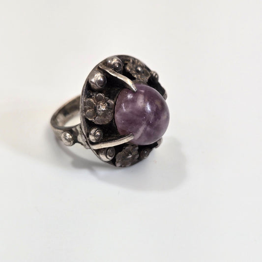 Vintage Signed Taxco Mexican Sterling Silver Amethyst Ring Size 6.5