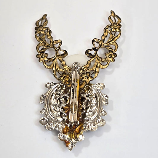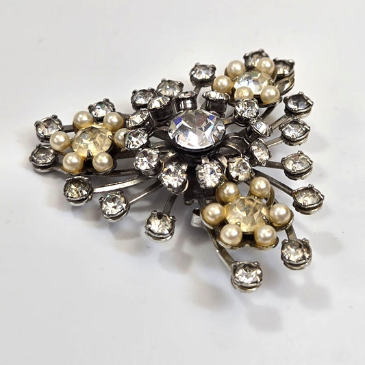 Vintage 1950's Rhinestone & Faux Pearl Brooch - As Found