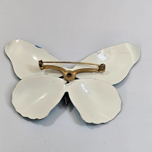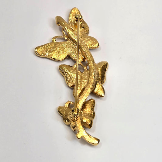 Vintage Butterflies Enameled Rhinestones Gold-Tone Brooch