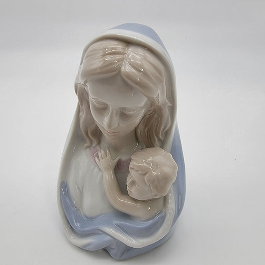 Vintage Roman Japan Porcelain Madonna & Child Bust Music Box Plays Ave Maria