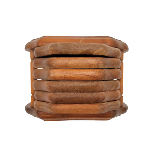 Wooden Coaster Set With Holder 6 Cork-Lined Octagonal Coasters