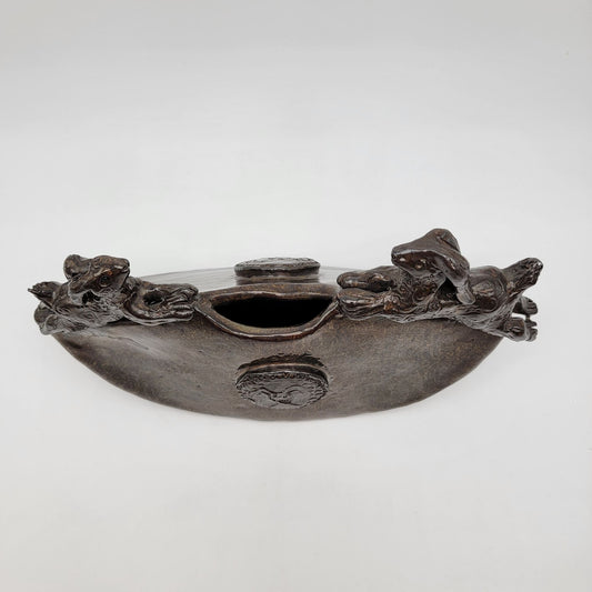 Mid-Century Modern Brutalist Crescent Hares Medallion Art Pottery Vase With Rabbits