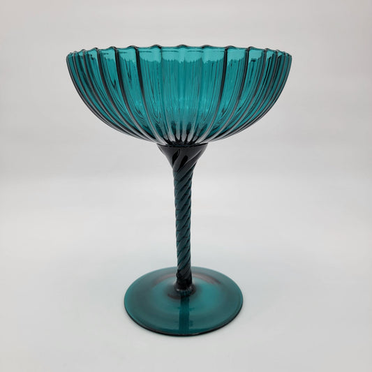 Empoli Teal Blue Ribbed Optic Art Glass Compote