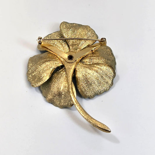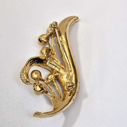 Vintage Napier Gold-Tone Faux Pearl Elegnat Leaf Brooch