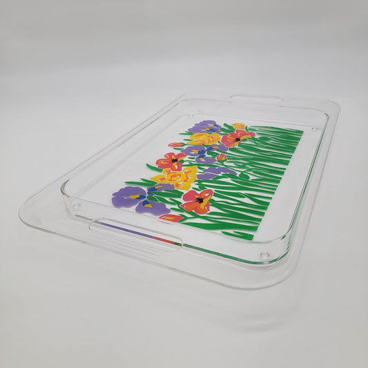 Vintage Acrylic Floral Serving Tray With Handles Colorful Flower Design
