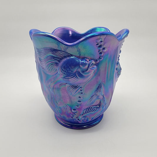 Fenton Glass 2004 Atlantis Periwinkle Iridescent Blue Fish Vase