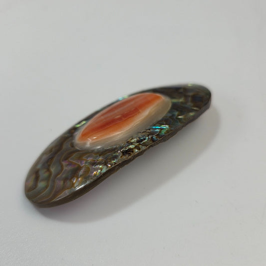 Inlaid Mother Of Pearl Fish Design Oval Hair Barrette