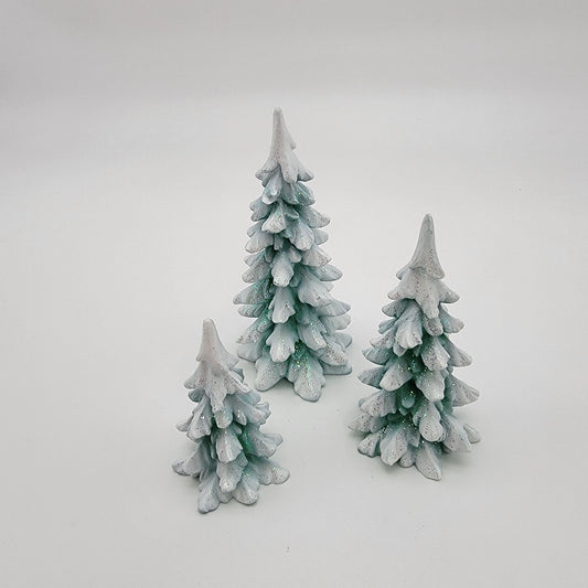 Dept 56 Winter Pines Village Collection Set Of 3 Glittered Christmas Trees