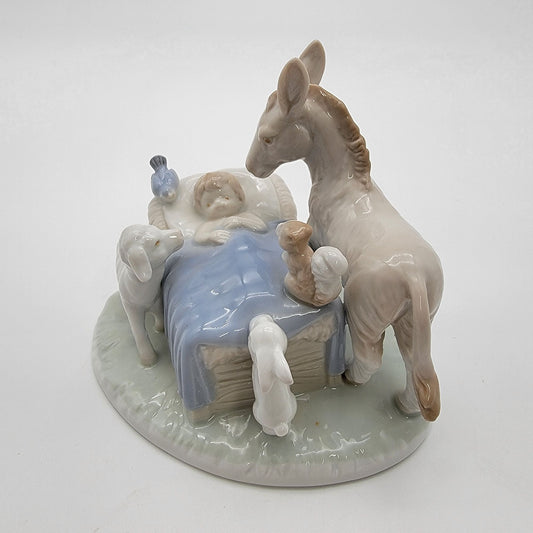Vintage Roman Japan Porcelain Jesus In The Manger Music Box Plays Adeste Fideles