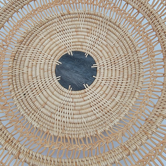 Signed Woven Seagrass Basket With Wood Center