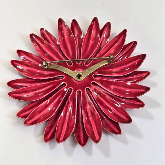 Vintage 1960s Enameled Flower Zinnia Brooch