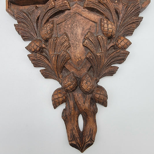 Antique Black Forest Wood Carved Thistle Wall Sconce Shelves Set Of 2