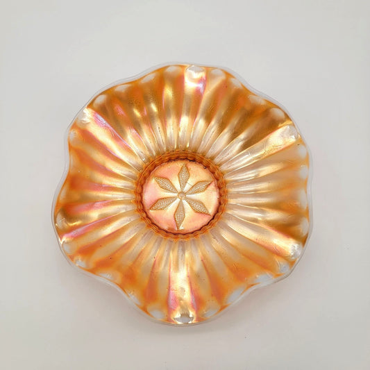 Antique Dugan Cosmos Varient Carnival Glass Peach Opalescent Bowl