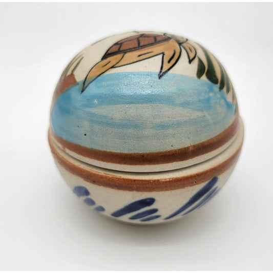 Vintage Tonala Pottery Sea Turtle Trinket Box Signed