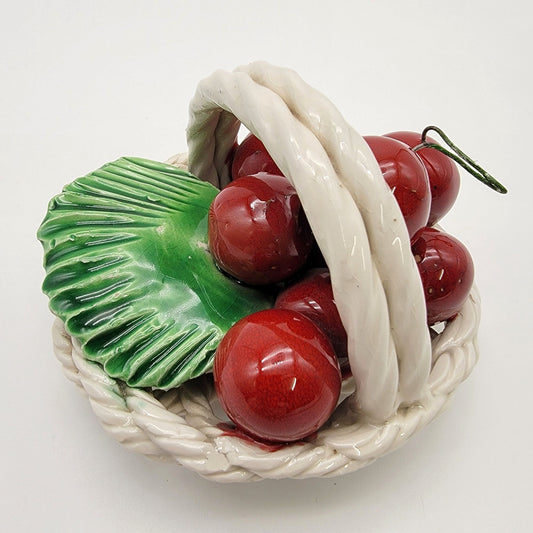 Vintage Italian Pottery Basket Of Cherries Sculpture