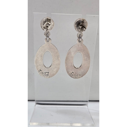 Taxco Mexico TC-271 925 Silver & Sleeping Beauty Turquoise Oval Dangle Earrings