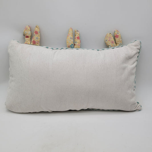 Decorative Easter Bunny Throw Pillow With Gingham & Floral Accents