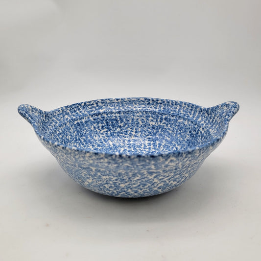 Vintage Blue & White Speckled Stoneware Bowl With Handles