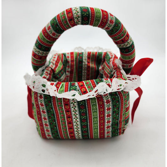 Vintage 1970s Handcrafted Christmas Fabric Basket With Handle