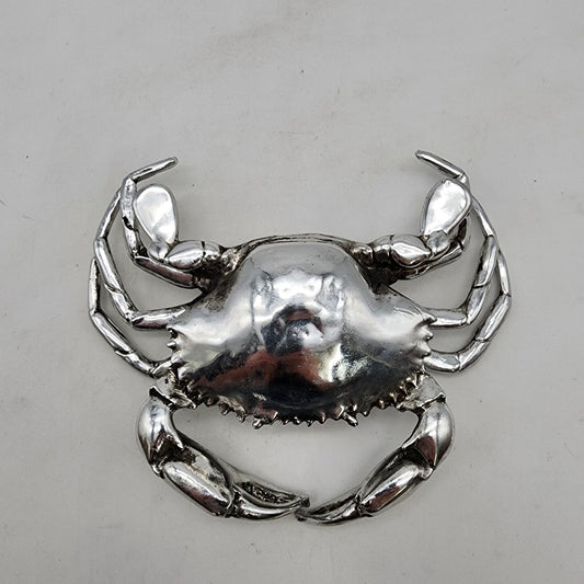 Silver Tone Metallic Mud Crab Coastal Decor