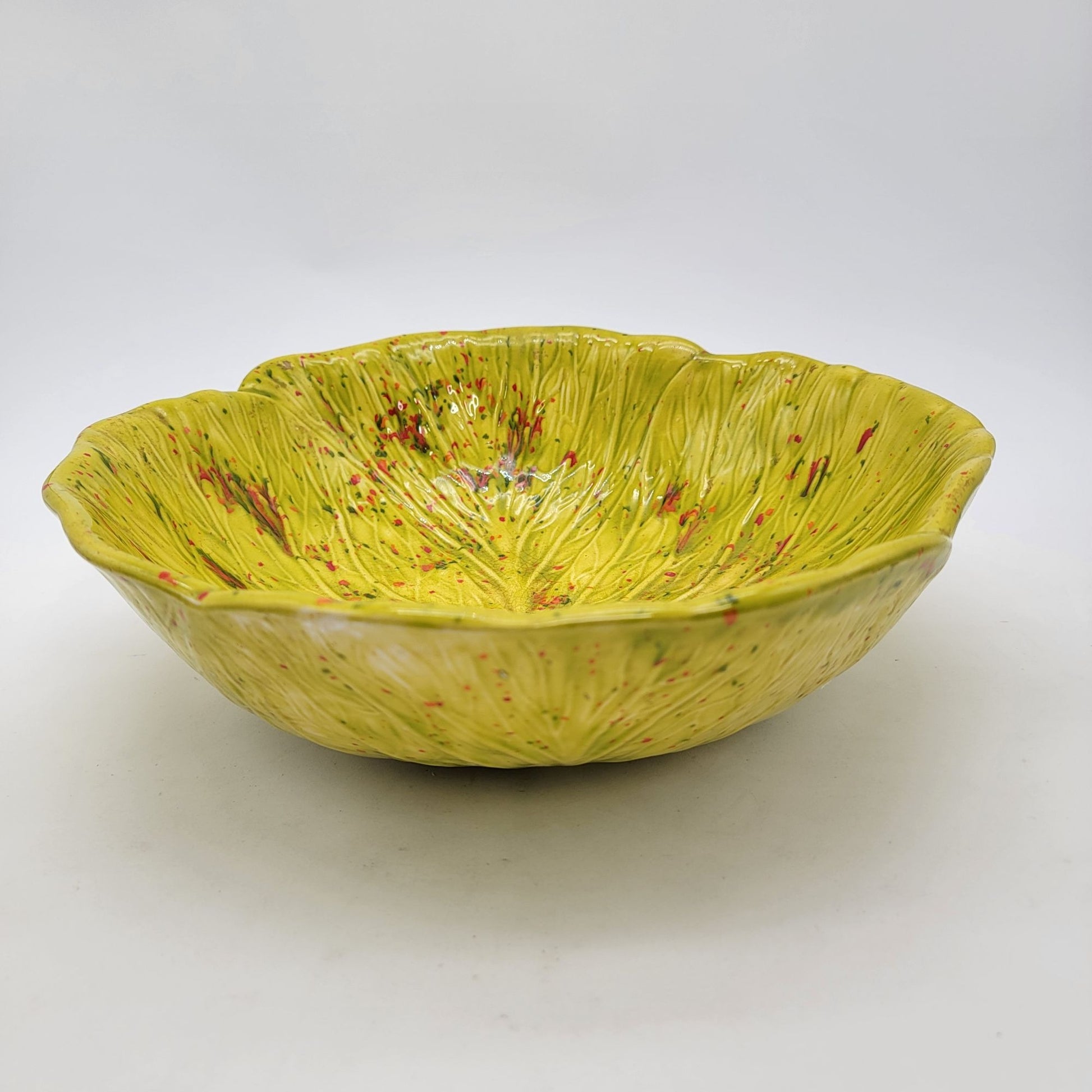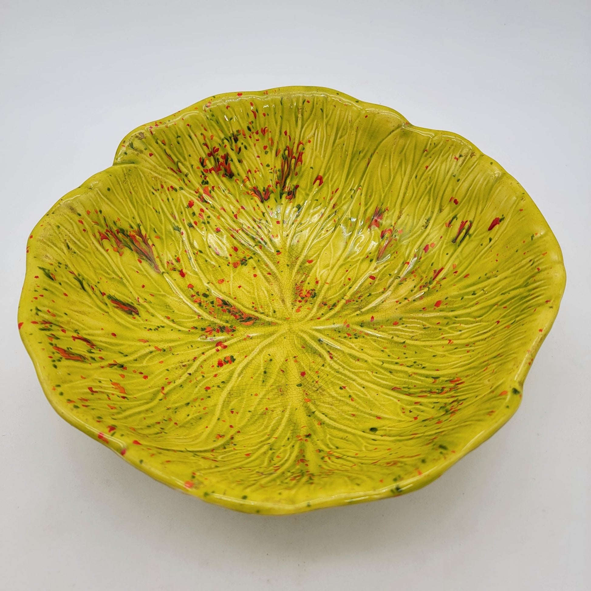 1960's Vintage Cabbage Leaf Serving Bowl With Speckled Design