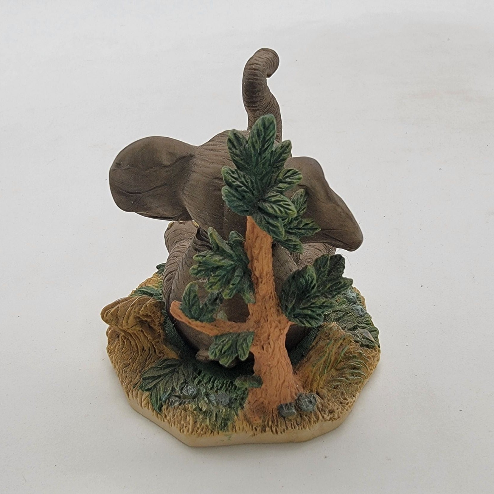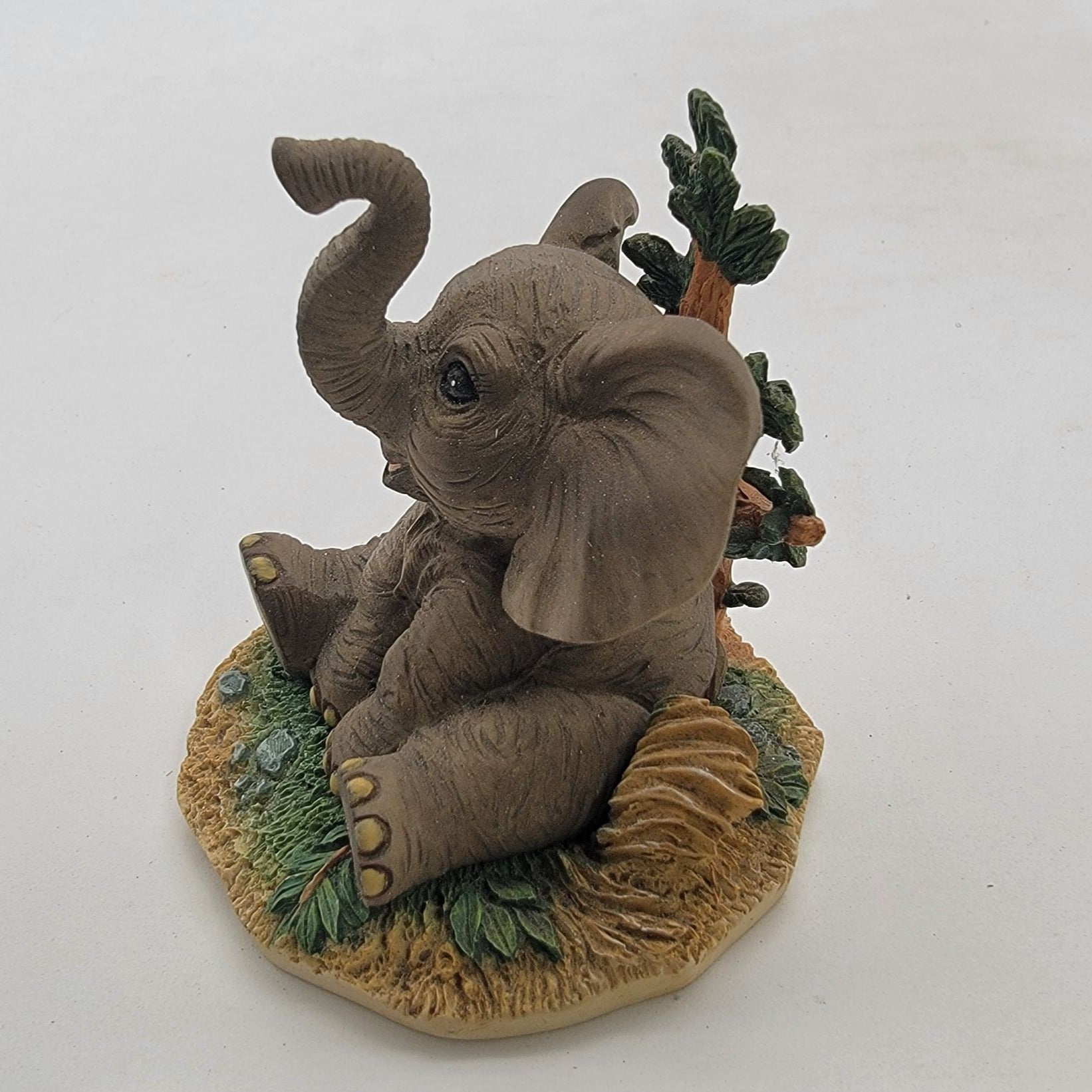 This vintage 1995 Hamilton Collection figurine depicts a charming baby elephant with intricate detailing, symbolizing the innocence of wildlife conservation.