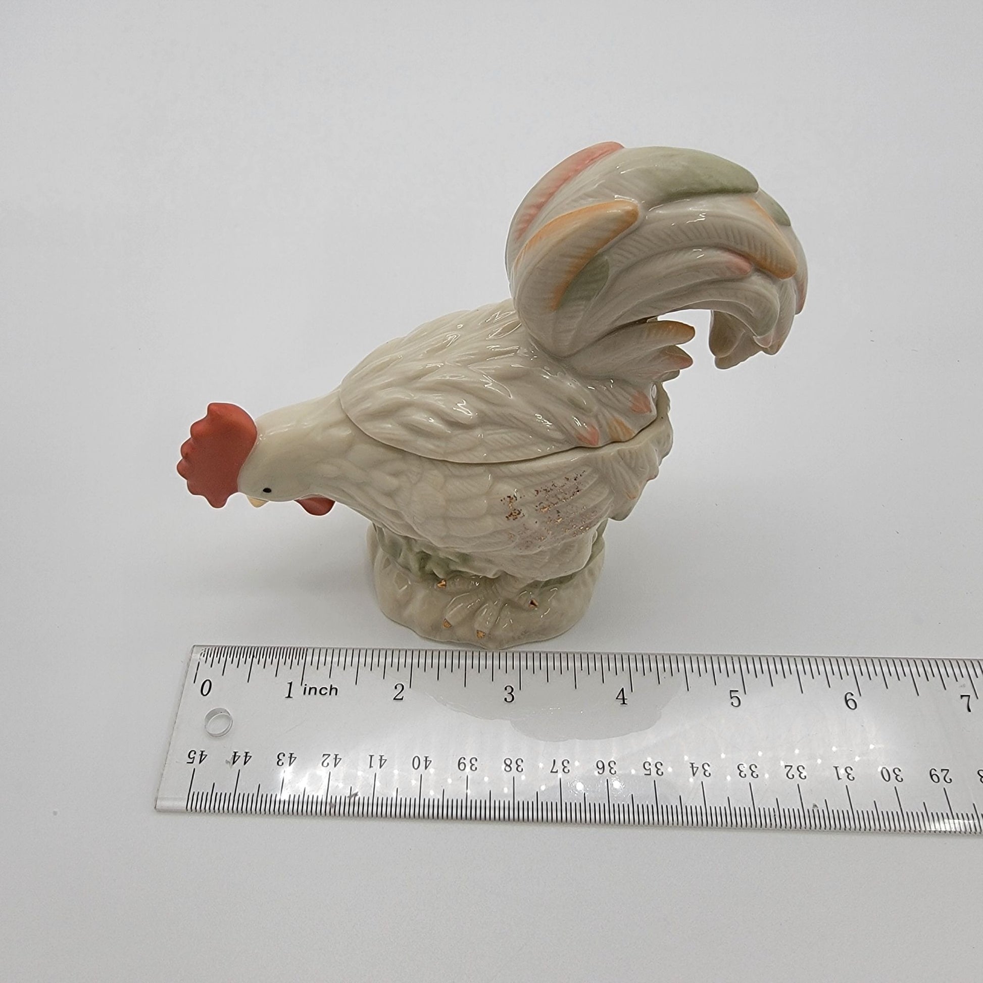 This charming Lenox sugar bowl captures the essence of vintage country elegance. Crafted in fine ivory china, it showcases delicate hand-painted details and a rooster design reminiscent of timeless rural artistry.