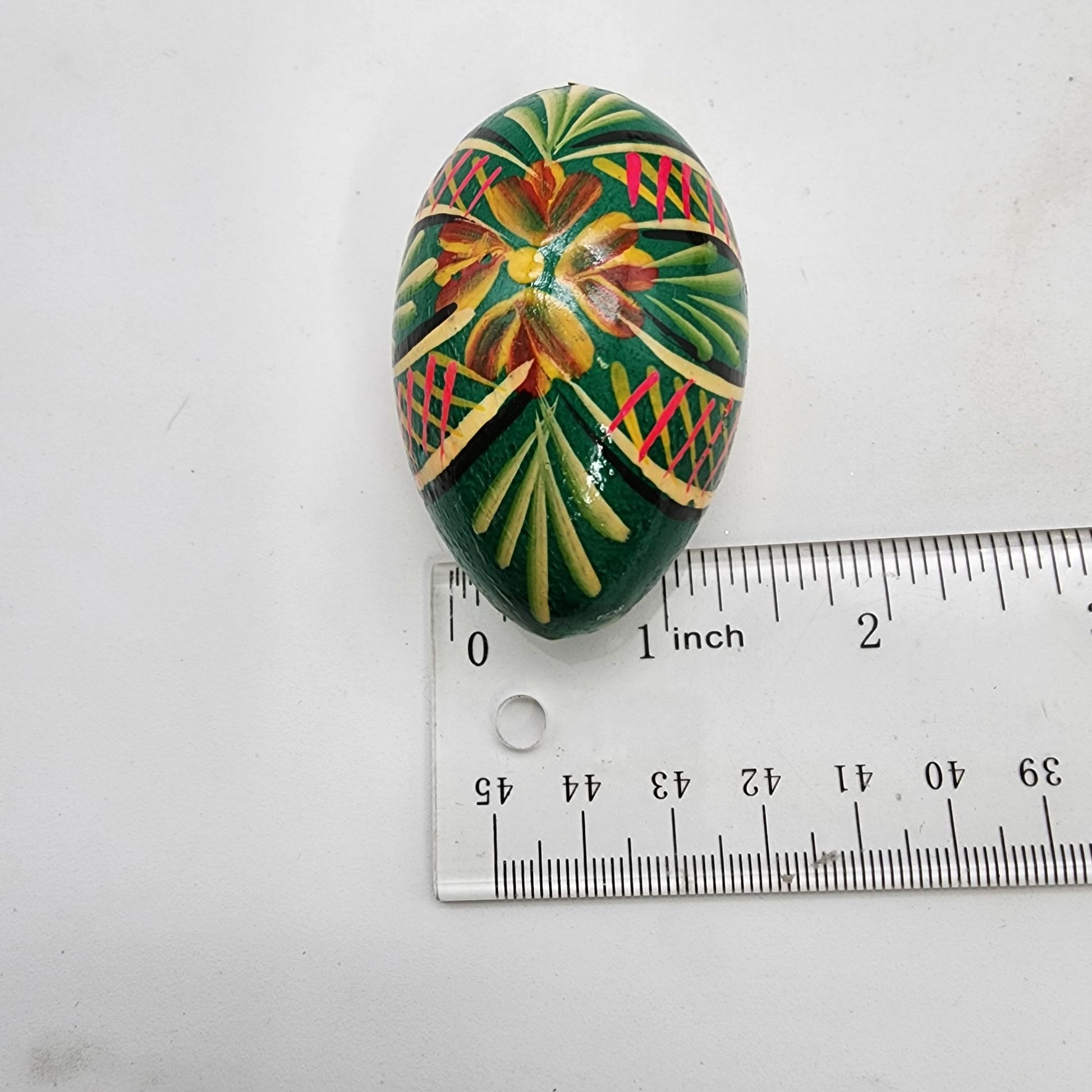 4 Hand Painted Eggs in Vintage Hexagon Wood Box With Brass Latch