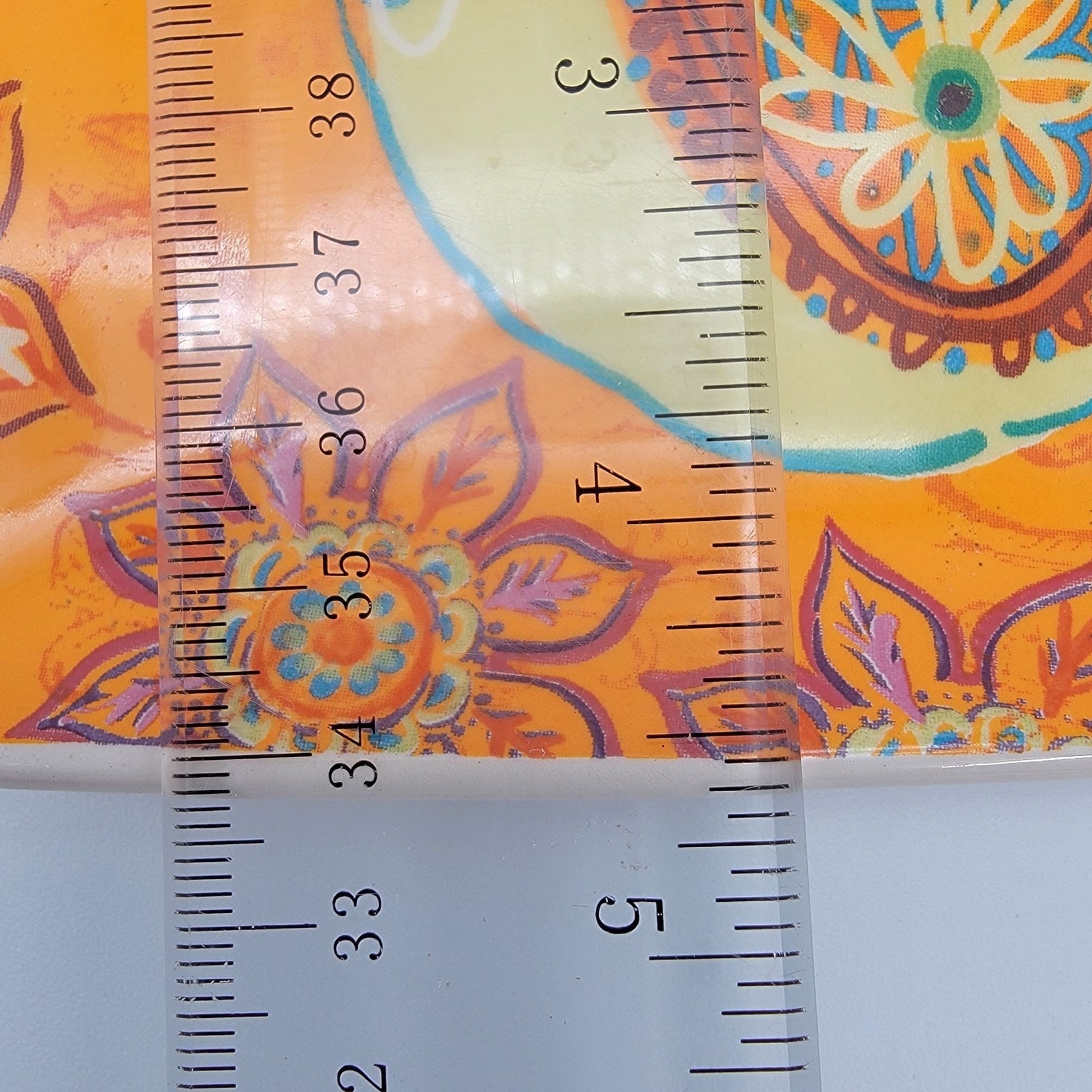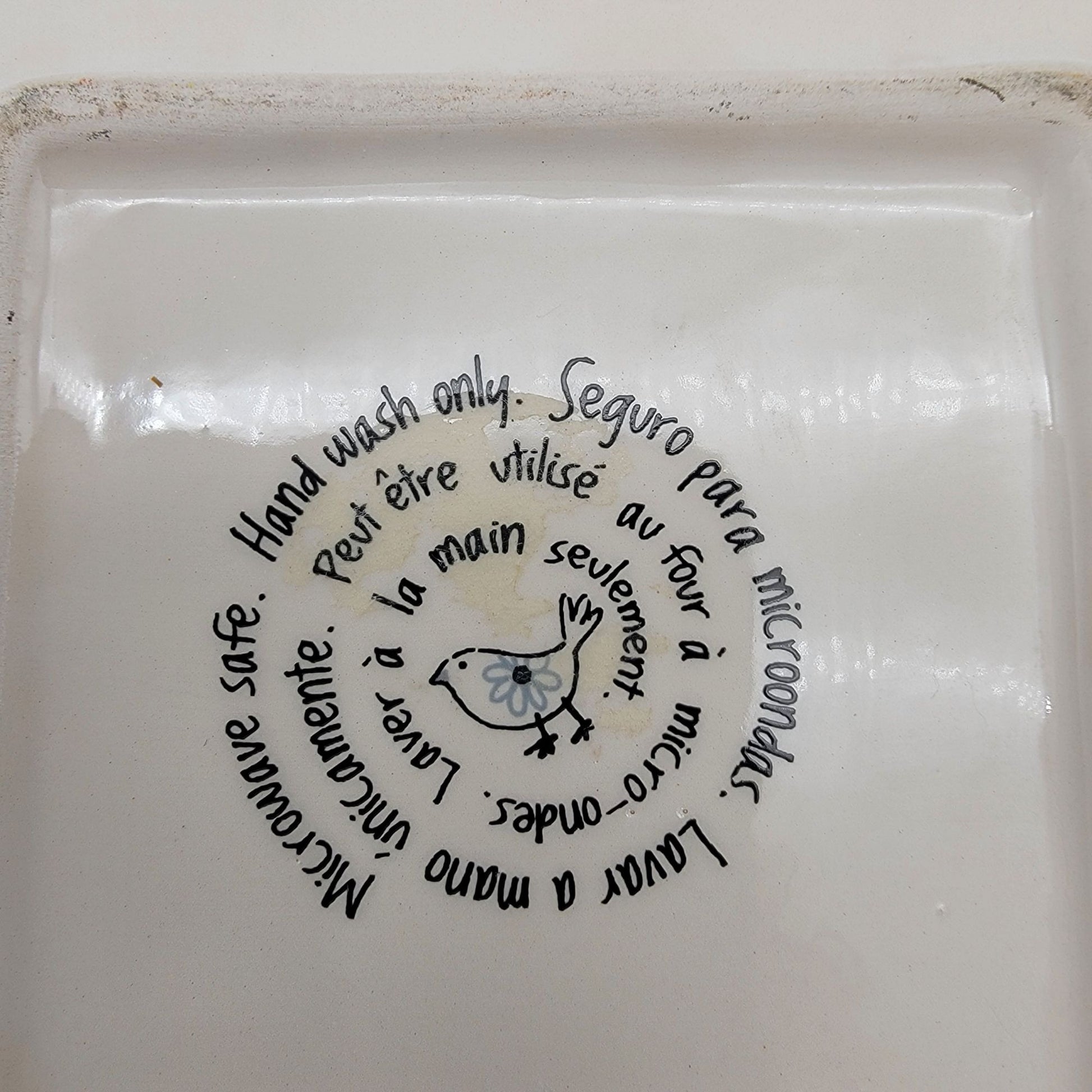This charming square dish, adorned with a vibrant rooster and floral design, brings a touch of countryside whimsy to any table or display. Its bold oranges and yellows evoke warmth and joy, making it a delightful accent for your home. Both practical and decorative, it’s an eye-catching piece of artistry.