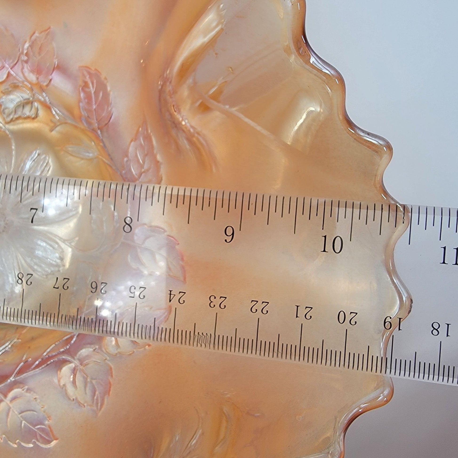 • Ruffled edge with intricate floral design