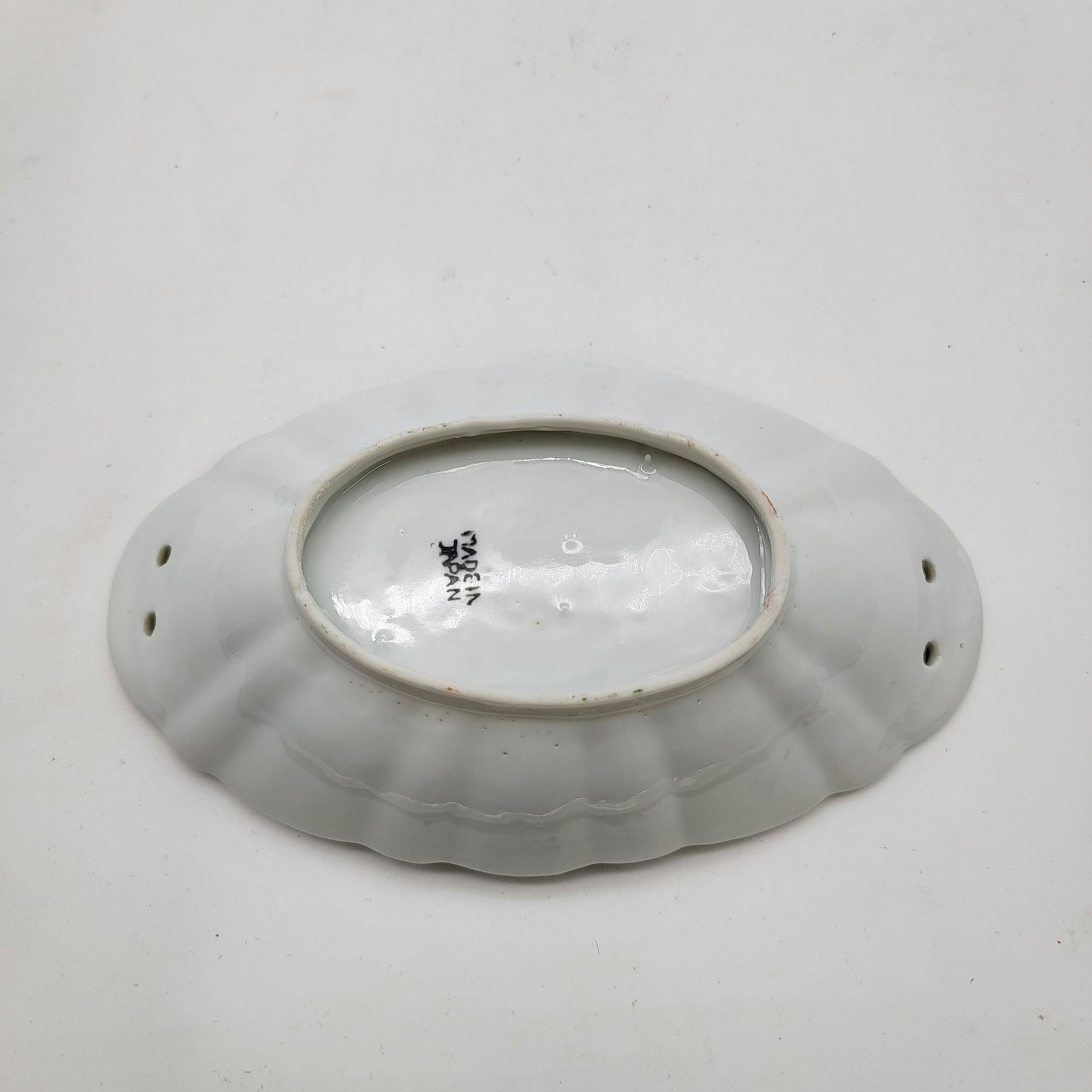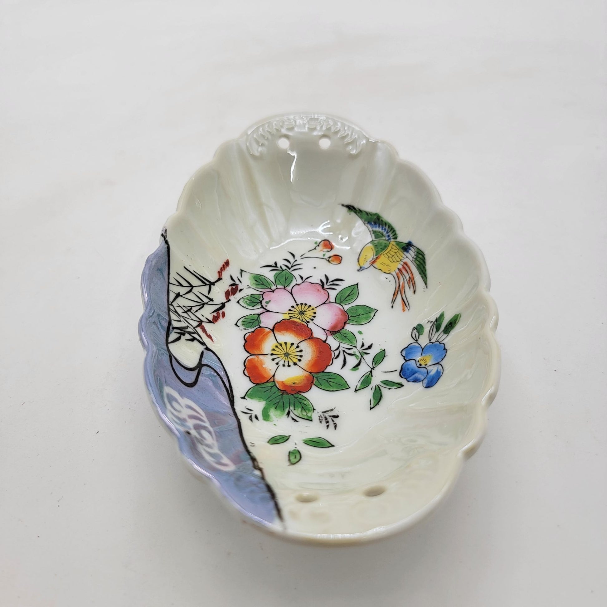 This exquisite porcelain dish showcases a hand-painted floral and bird design, reflecting the elegance of Japanese craftsmanship. Its delicate scalloped edges and vibrant colors make it an eye-catching addition to any collection. The dish's vintage charm and intricate detailing highlight its historical significance and artistic value.
